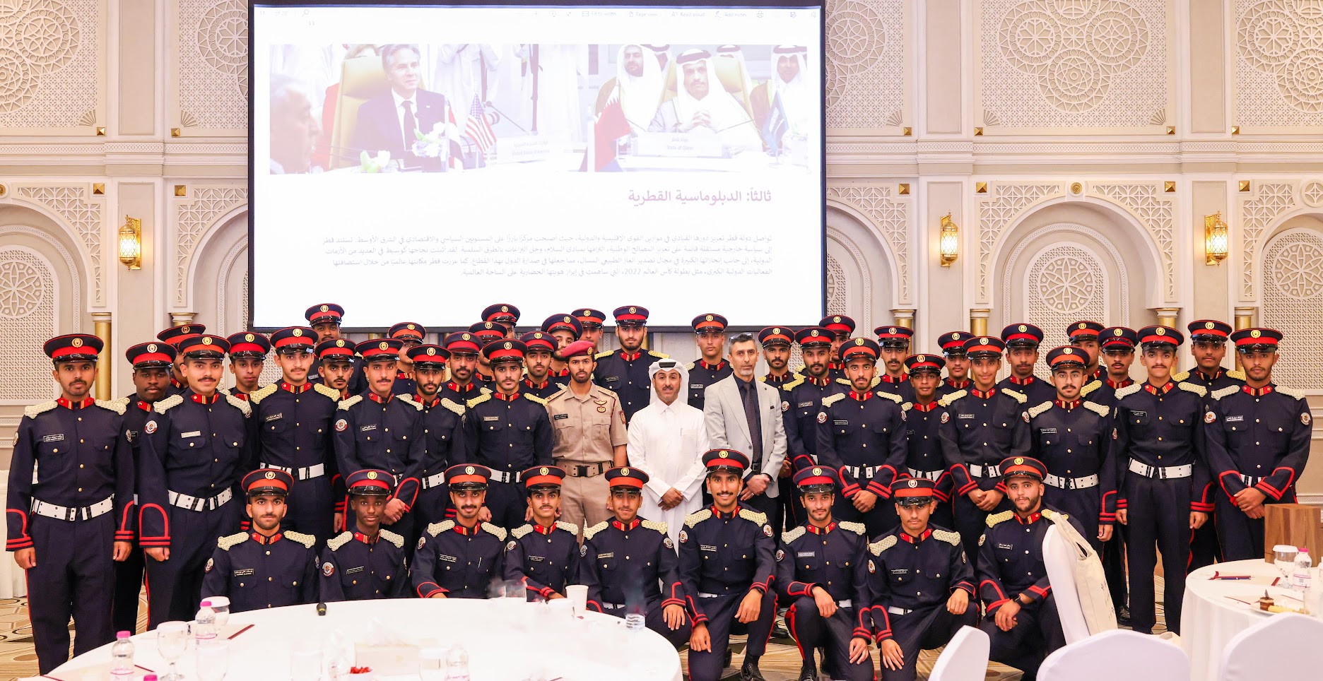 استقبل المعهد الدبلوماسي 58 مرشحًا من الضباط ضمن الدفعة (22) من كلية أحمد بن محمد العسكرية في زيارة ميدانية تهدف إلى تعزيز المعرفة والمهارات الدبلوماسية لدى القادة العسكريين المستقبليين.