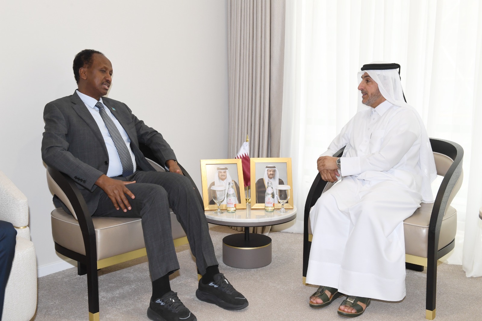 وجرى خلال اللقاء التأكيد على عمق العلاقات الثنائية بين دولة قطر وجمهورية الصومال الفيدرالية، وحرص الجانبين على تعزيزها بما يخدم المصالح المشتركة.