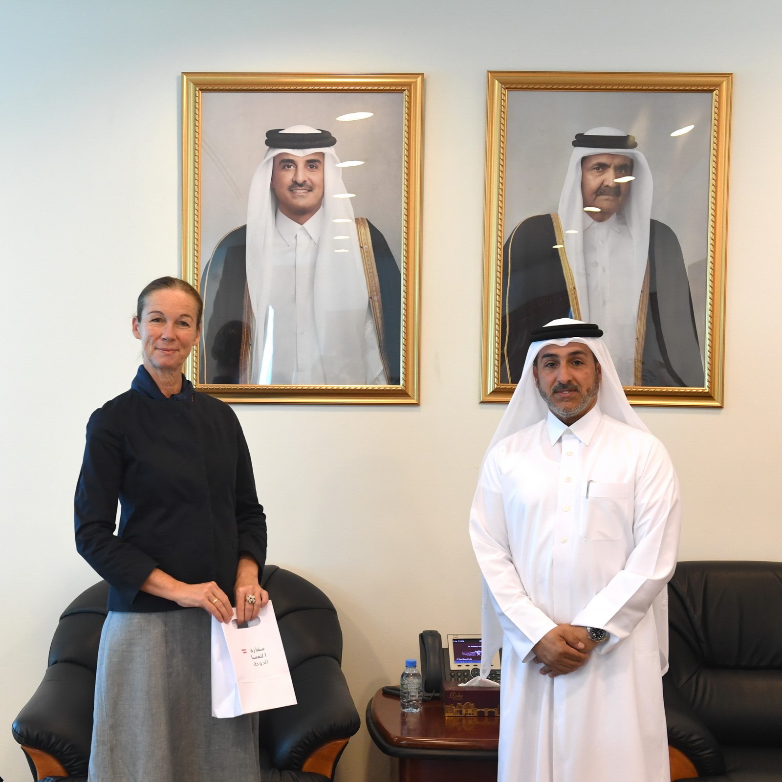 استقبل سعادة الدكتور عبد العزيز بن محمد الحر، مدير المعهد الدبلوماسي، سعادة السيدة إيريكا بيرنهارد، سفيرة جمهورية النمسا لدى دولة قطر، في لقاء مهم يهدف إلى تعزيز العلاقات الدبلوماسية بين البلدين.