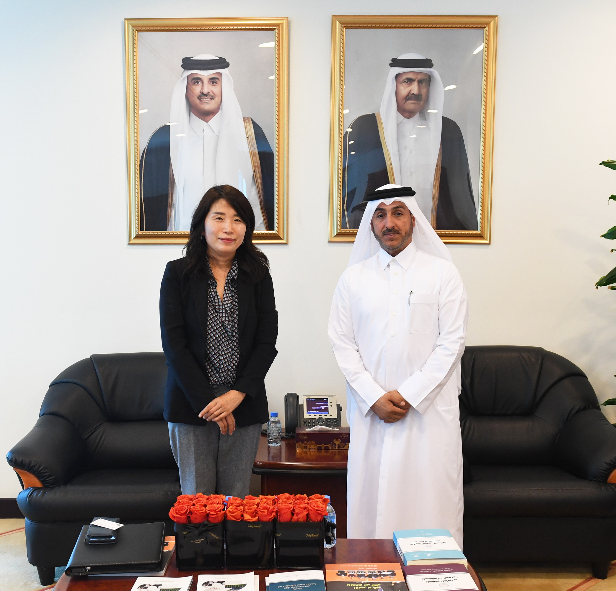 استقبل سعادة الدكتور عبد العزيز بن محمد الحر، مدير المعهد الدبلوماسي، سعادة السيدة بيل هو كانغ، الوزير المفوض ونائب رئيس البعثة لجمهورية كوريا لدى دولة قطر، في لقاء مثمر يهدف إلى تعزيز العلاقات الدبلوماسية بين قطر وكوريا الجنوبية.